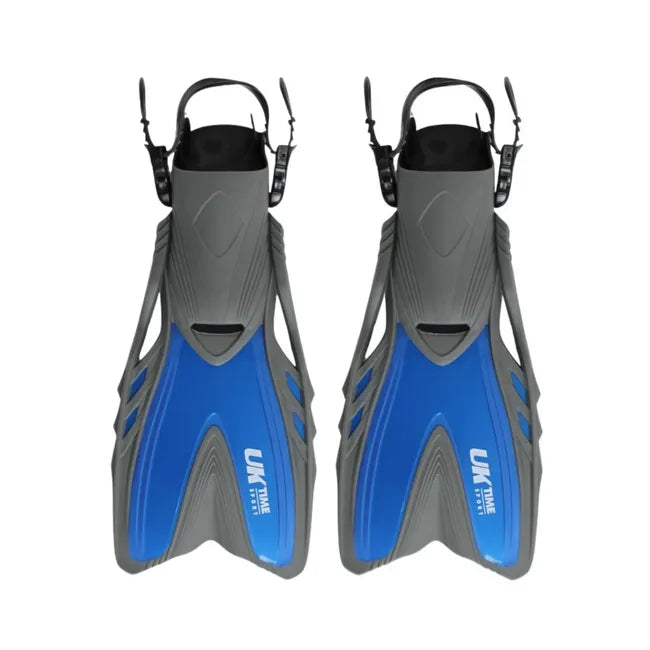 Las aletas de natación ajustables UK TIme tienen un diseño de talón abierto para buceo profesional.