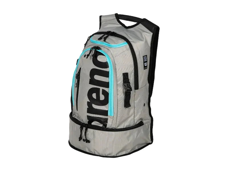 La práctica y versátil mochila arena Fastpack 3.0 está diseñada para nadadores, triatletas y amantes del deporte. Su gran compartimento trasero ofrece suficiente espacio de almacenamiento, incluso para herramientas de entrenamiento grandes, como una tabla de flotación. El espacioso compartimento inferior es ideal para la ropa mojada o dos pares de zapatos. La mochila se puede colgar con el mosquetón y puede utilizarse como armario. Incluye una bolsa separada para guardar tus prendas mojadas. El panel trasero reforzado transpirable y las correas ergonómicas para los hombros proporcionan una comodidad excelente, incluso con la mochila completamente cargada. El fondo reforzado protege tus herramientas de los suelos mojados. Dimensiones: 54 x 36 x 27 cm, 40L